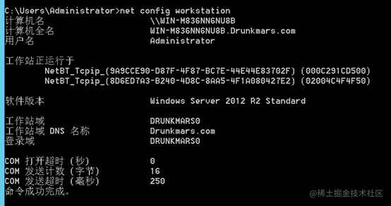 net config workstation 查看域内信息