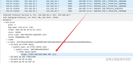 padata-type:padata类型,这是eTYPE-AES256-CTS-HMAC-SHA1-96(18)