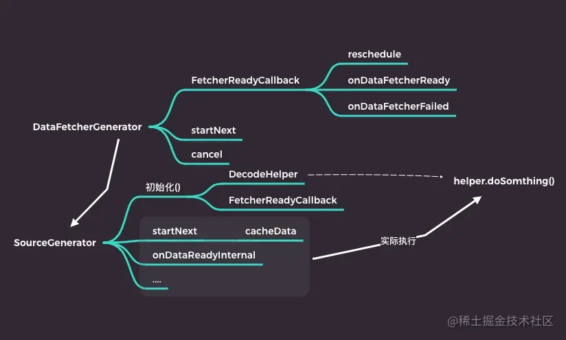 startNext(),虽然在叙述中说此方法生成一个DataFetcher,但是返回值只是Boolean表示DataFetcher是否开始执行,那么DataFetcherGenerator如何和DataFetcher发生联系的呢
