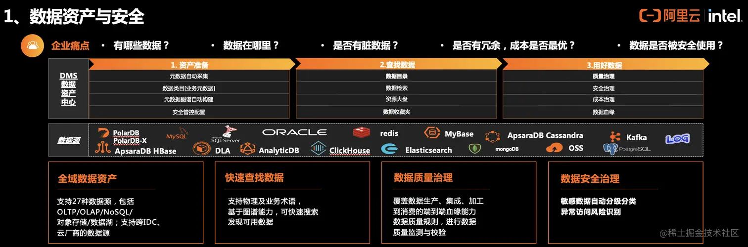 在整个数据资产与安全方面,其实最核心构建的是整个全域数据资产管理,让企业数据不需要进行物理集中就能够快速找到所要的数据进行数据资产的治理,同时能够让数据本身的管理覆盖整个生命周期的安全。