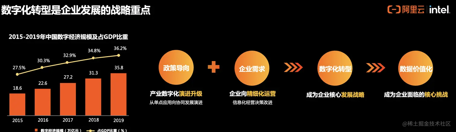 中国数字经济的占比在持续的提升,在企业经营管理过程中行业的头部集中效应使得精细化运营成为一个非常重要的话题,那么企业的数字价值挖掘就变得越来越重要。