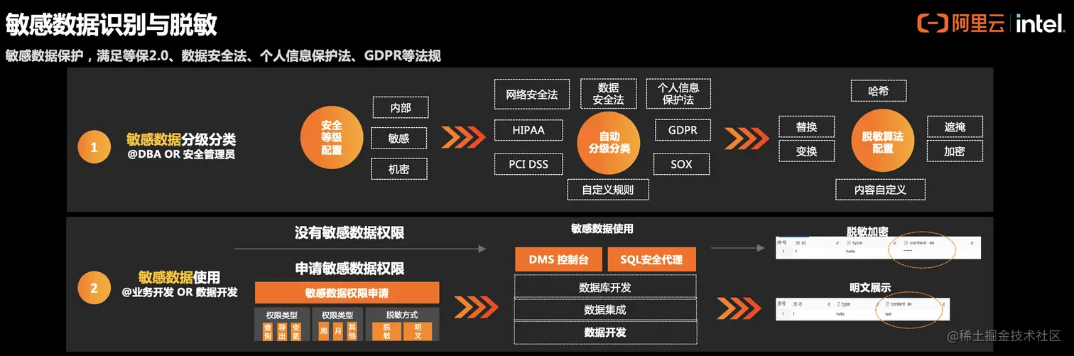 关于敏感数据识别,企业内部的所有数据进行统一管理后,平台就可以帮你自动把数据进行分级分类,在分级分类的基础上可以进行包括GDPR的在内的五种法案的敏感数据自动识别自动发现,企业可以使用我们超过15种的脱敏算法在应用生产过程中。我们也提供了安全代理的能力,让企业不需要有数据库的账号也可以动态的实现数据的查询和脱敏。