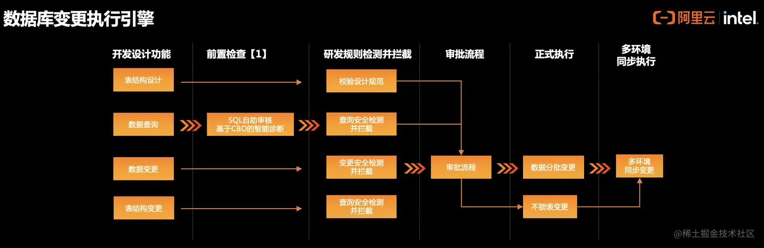 在变更部分也实现了变更安全能力,变更安全可以理解是企业变更发布过程中的安全能力,包括像SQL安全的审核,以及正式的SQL执行的过程中,对于表结构或者大批量数据操作,变成多次的小批量,通过SQL自动改写防止源库的稳定性抖动,包括表结构的变更的锁表的问题变成不锁表变更,等等一些细粒度的变更安全的把控。