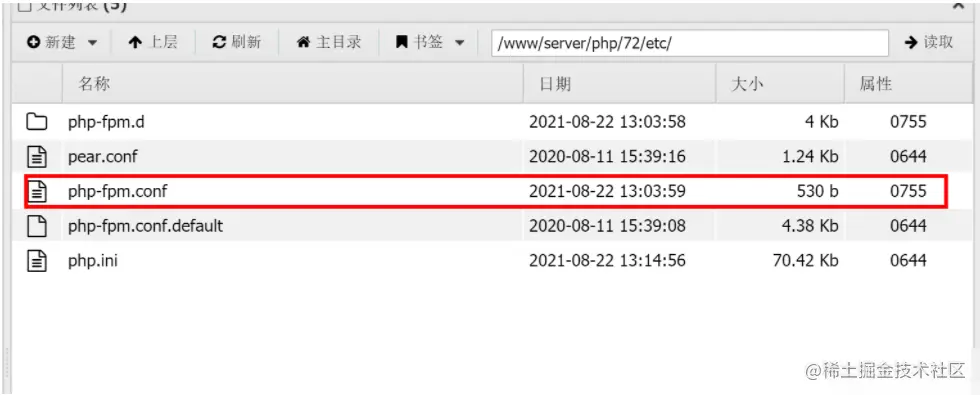再绕之前先用蚁剑连接一下,可以翻目录,那就不要改马来绕过目录翻阅限制了,先找到php-fpm配置文件的位置,从前面可以知道php是7.2版本的,这台服务器上有好几个版本的php