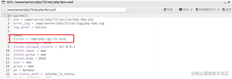 上图可以看到监听地址为/tmp/php-cgi-72.sock,由于此处的listen并不是一个具体的端口号,没有办法使用远程攻击tcp模式的php-fpm来执行命令,也没办法使用SSRF结合Gopher协议攻击本地的php-fpm,因为两种攻击手法都是利用tcp模式,那么只剩下最后一种利用手段了