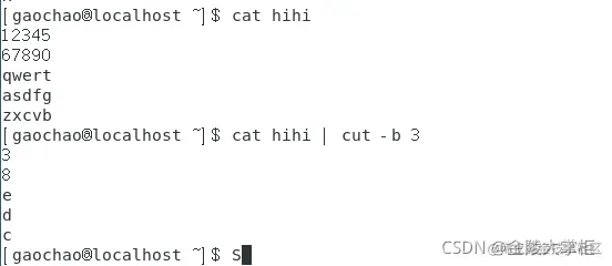 批注: cut 命令从文件的每一行剪切字节、字符和字段并将这些字节、字符和字段写至标准输出。