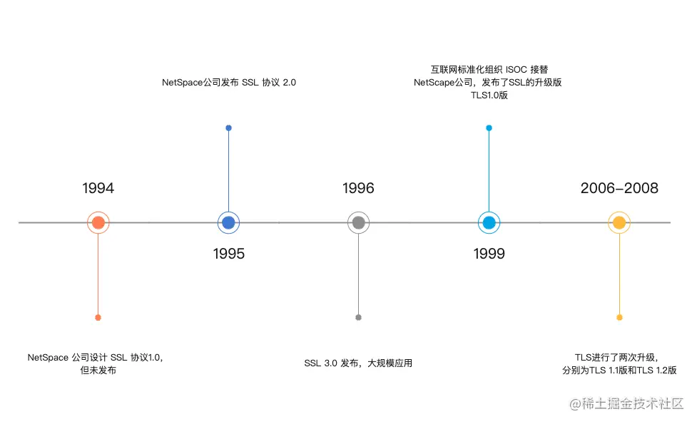 1999 年,因为 SSL 协议广泛应用,IETF 把 SSL 标准化并改名为 TLS(Transport Layer Security)。