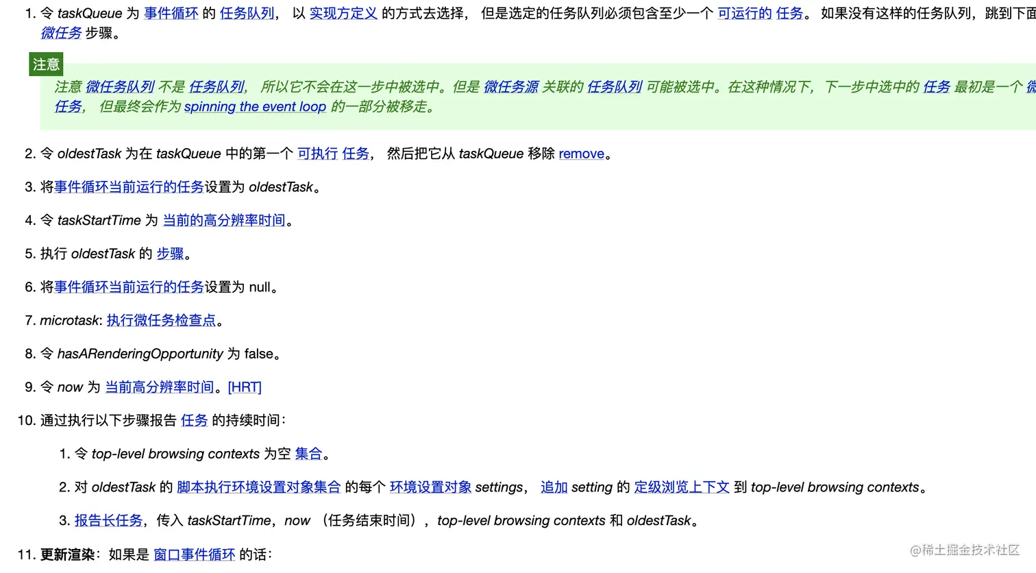 本文的讲解主要也是以 whatwg 标准为主,在 HTML Living Standard Event loops 中,这个规范定义了浏览器内核该如何的去实现它。