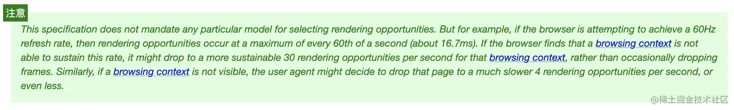规范中还有这样一段描述,得到一个信息是:在每一次的事件循环结束后不一定会执行渲染。
