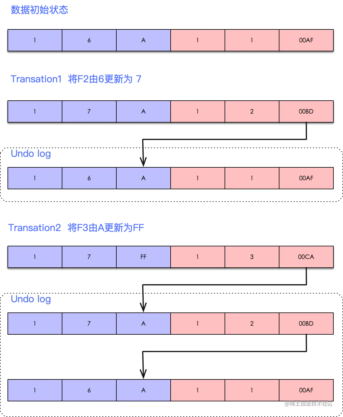 DB_ROLL_PTR 表示回滚指针,其指向当前记录上一次更新或新增操作对应的undo log,undo log 能还原数据到之前的状态