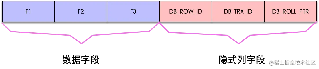 InnoDB 会为第一行数据加三列,分别是DB_TRX_ID、DB_ROLL_PTR、DB_ROW_ID( InnoDB Multi-Versioning)。
