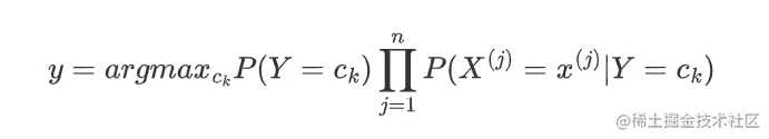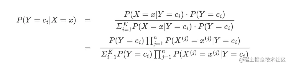 假如存在K类c1,c2,...,cK,现在给定一个新的实例 x=(x(1),x(2),...,x(n))。问该实例归属于哪一类?