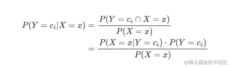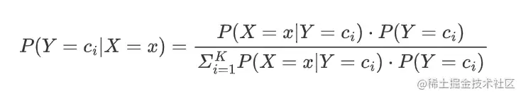已知:存在K类 c1, c2,..., cK,给定一个新的实例 x=(x(1),x(2),...,x(n))。问:该实例归属第ci类的可能性有多大?