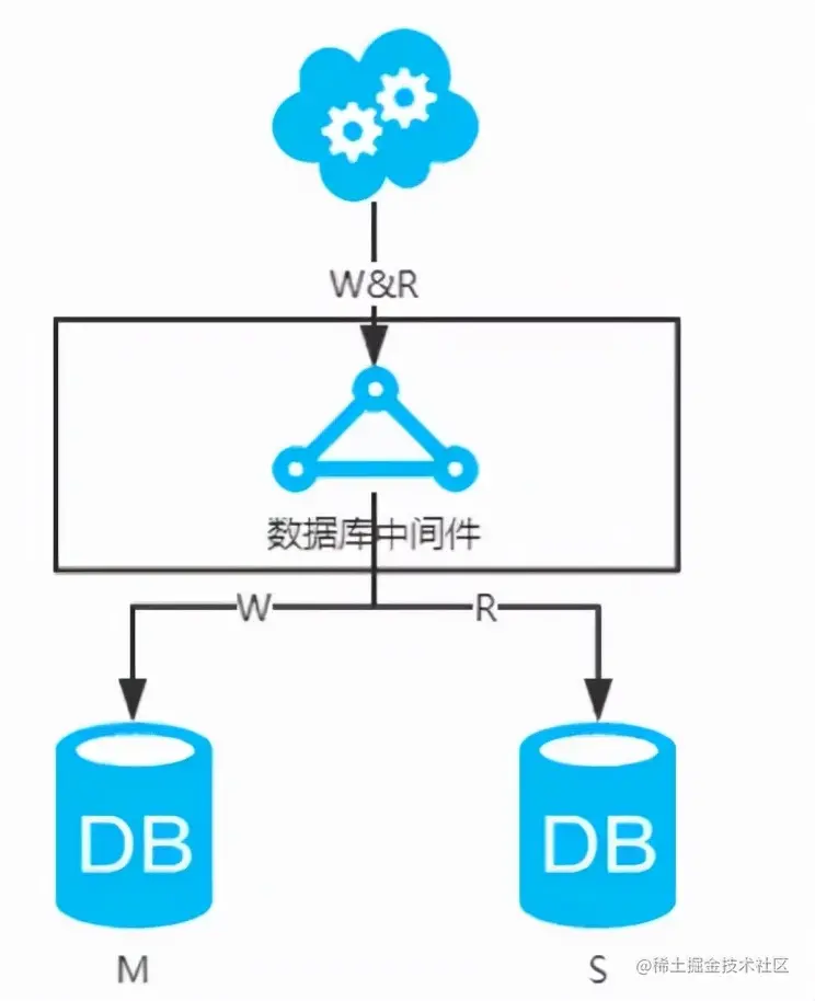 5、数据库中间件,引入开源(mycat等)或自研的数据库中间层。个人理解,思路同选择读主。 数据库中间件的成本比较高,并且还多引入了一层。