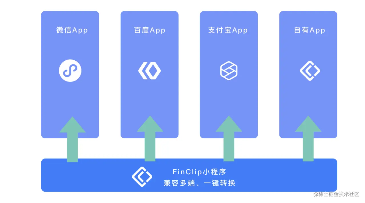FinClip小程序 = 微信小程序:从技术栈上,一个微信小程序可以直接编译为FinClip小程序,一个代码包在双端(微信App 和 集成FinClip SDK的APP)上,表现是完全一样的