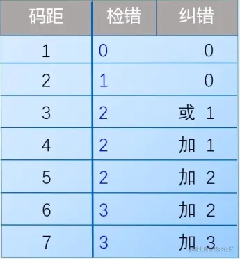 - 码距越大,抗干扰能力越强,纠错能力越强,数据冗余越大,编码效率低,编码电路也相对负复杂