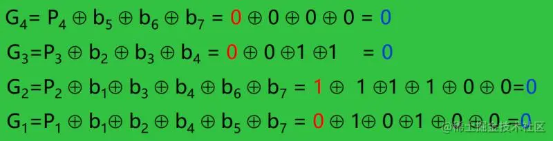 - 指错字G4G3G2G1= 0000 不一定无错(利用偶校验的特点去判断)