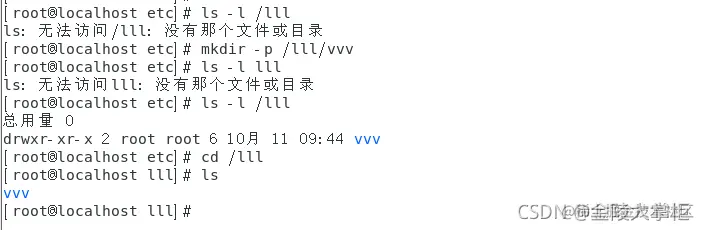 可以看到在/etc目录下原本是没有/lll目录的,但是使用了-p参数之后,系统自动创建了父目录/lll,说明此题选择D没有问题。