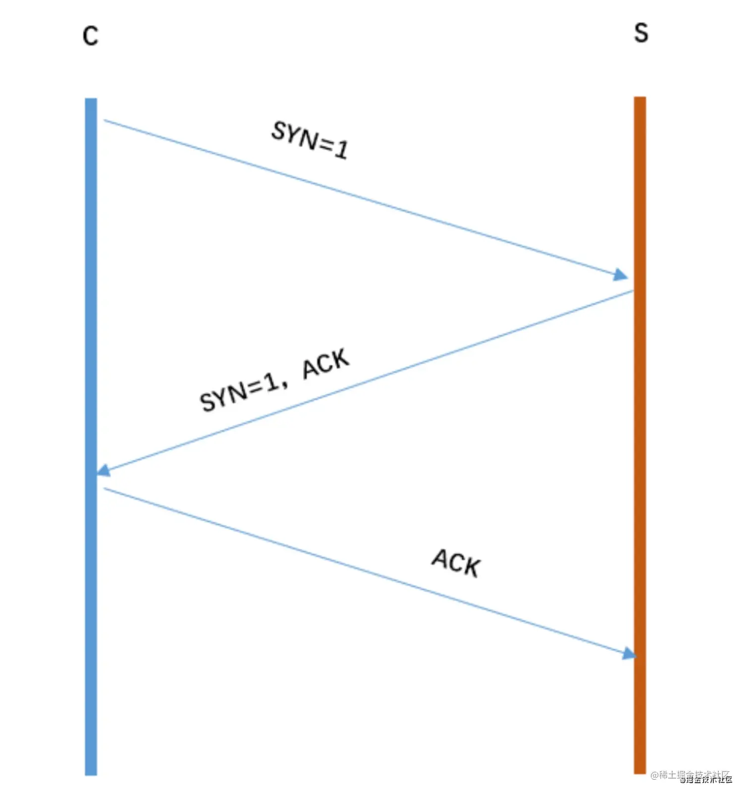 - 第二次握手:C 可以确认S 收到了自己发送的报文段,并且可以确认自己可以接受S 发送的报文段。
