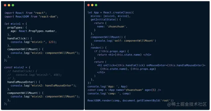 React在v15.3.0之前,通过React.createClass 创建组件,支持mixins; 在v15.3.0之后(包含),通过class 创建组件,废弃mixins。