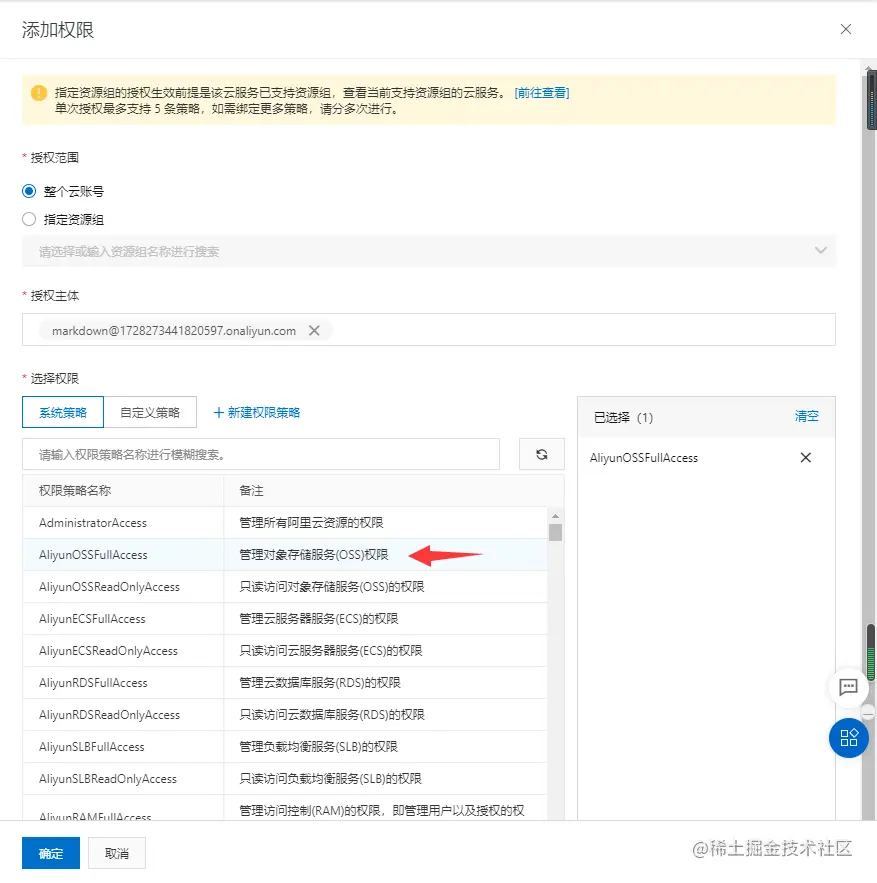 第四步:配置OSS访问权限