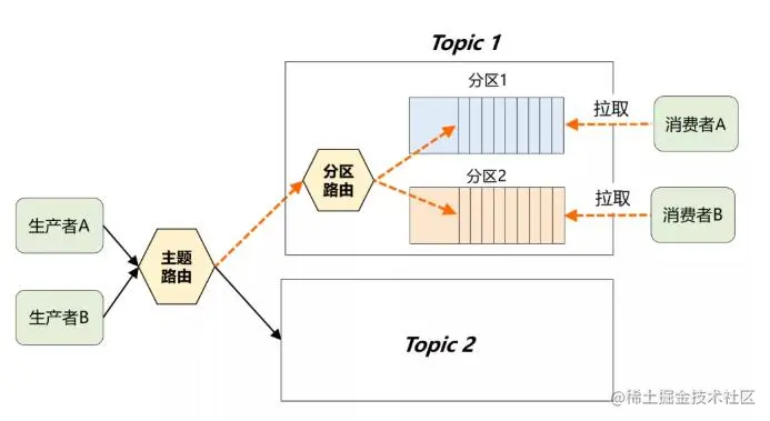 这样,一条消息的流转路径就如下图所示,先走主题路由,然后走分区路由,最终决定这条消息该发往哪个分区。