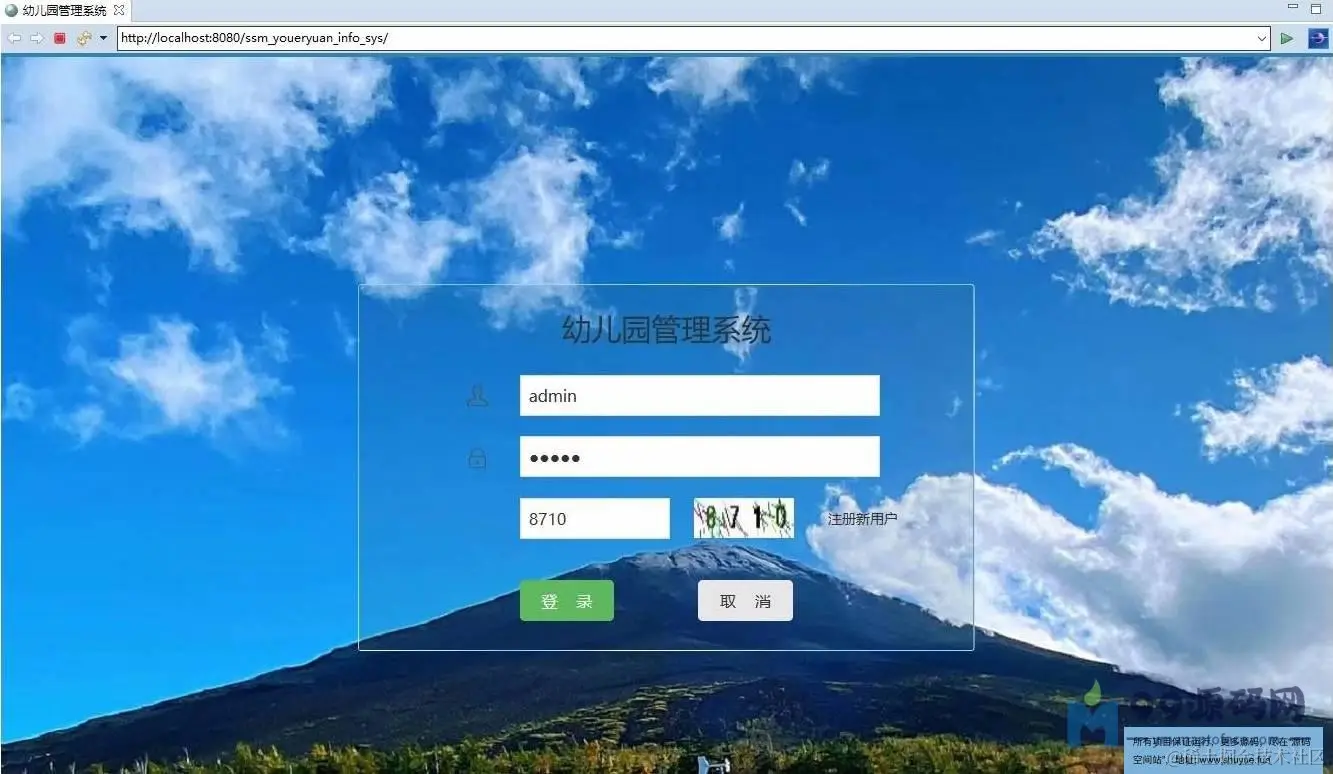 4. 运转项目,输入localhost:8080//ssm_youeryuan_info_sys/ 登录
