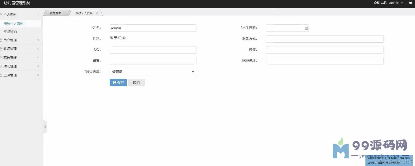 管理员登录,修正个人材料和密码,管理员用户管理,教员管理,家长管理,幼儿信息管理,上课管理等功用。