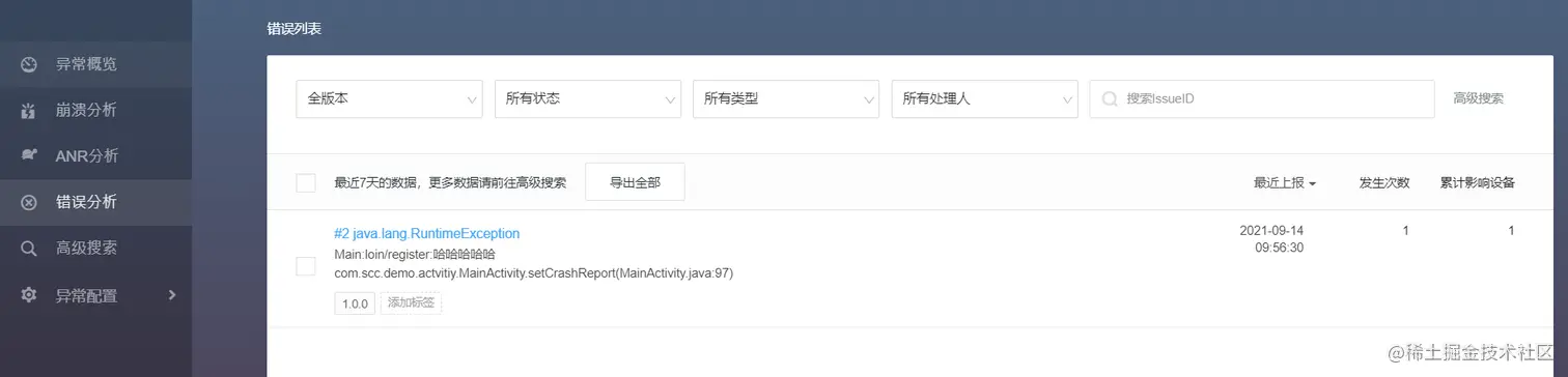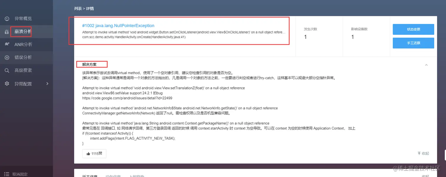 这个不用咱自己设置,Bugly自动抓取,下面提供跟错误分析类似功能这里就不多描述了。
