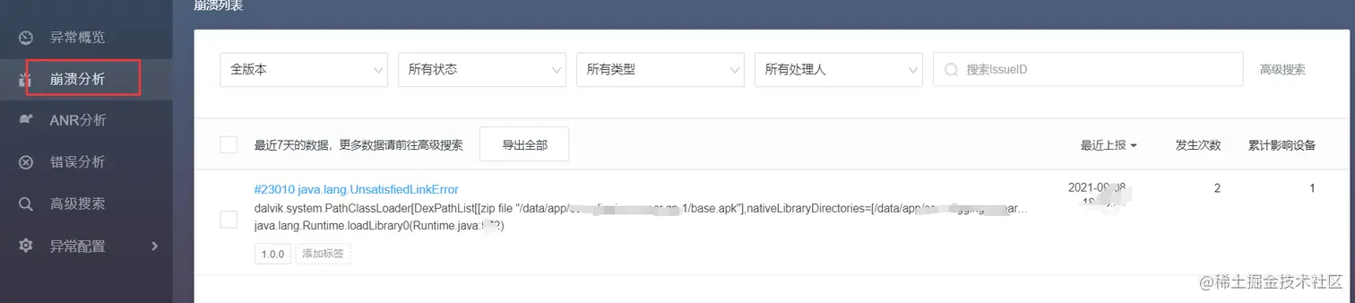 程序崩溃分析这块我没做调整,这个是bugly自动抓取的。