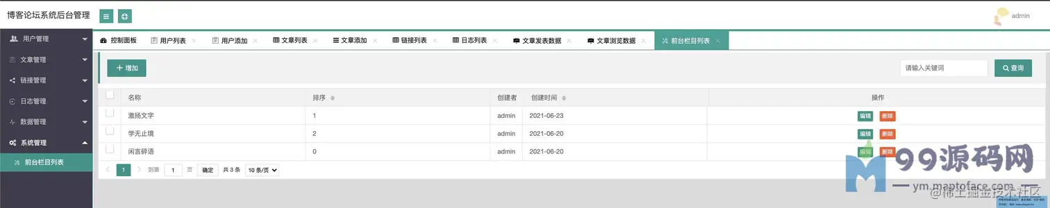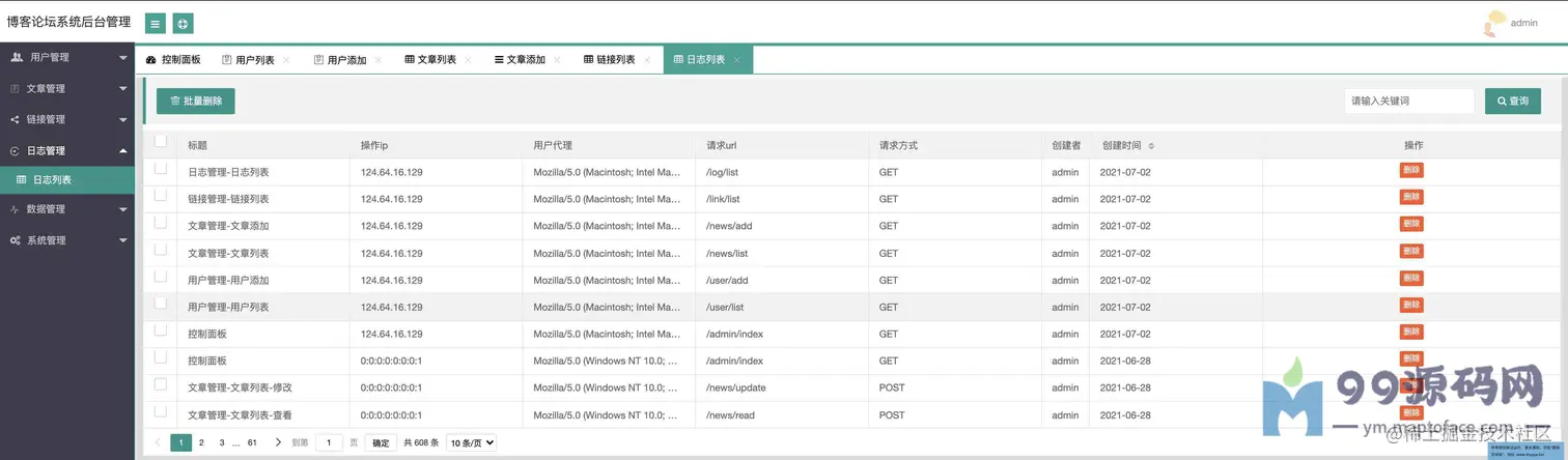 登录,用户增删改查,文章增删改查,链接增删改查,日志查看,查看近期数据,类别管理等功能。