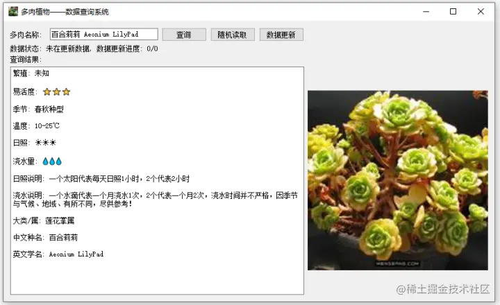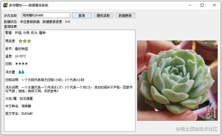 SO 做了一款Python界面化小程序—多肉植物的数据查询小系统,养护的日朝、施肥、繁殖等等都在里面!