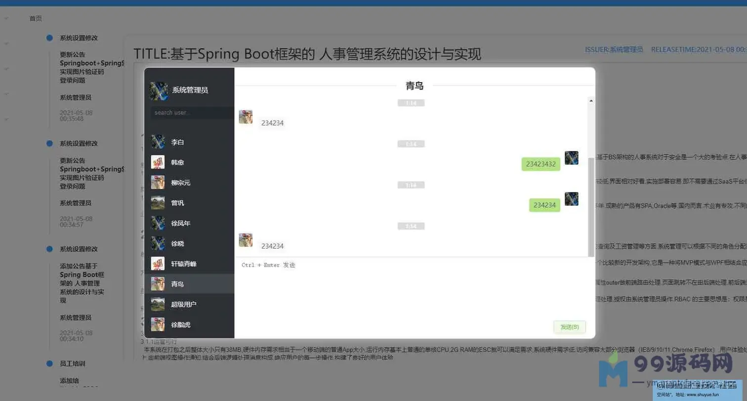 springboot企业人事系统(含论文)、