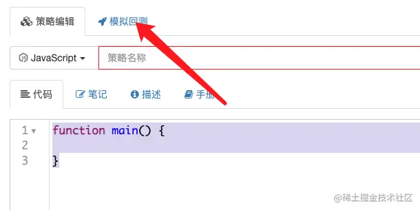 这样我们就在策略中创建了一个函数,名为main,我们可以运行一下。