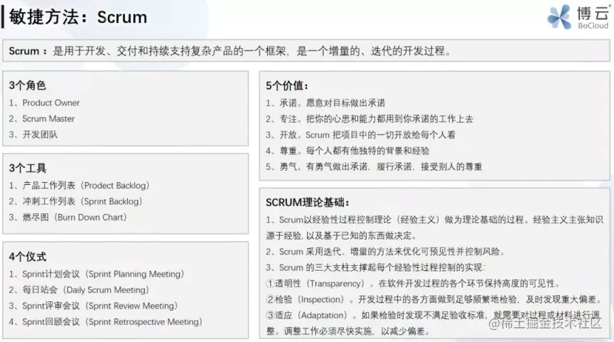 再比如,强调面向人,而非面向过程。强调人的作用与价值。所以敏捷宣言中会说“个体和交互重于过程和工具”。