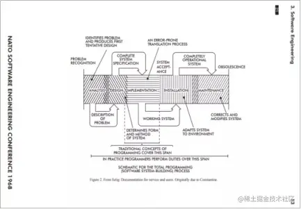 洛克希德软件技术中心的 Winston W. Royce,在其 1970 年的论文“Managing the Development of Large Software System”中提出了一个长得很像瀑布(waterfall)的流程。