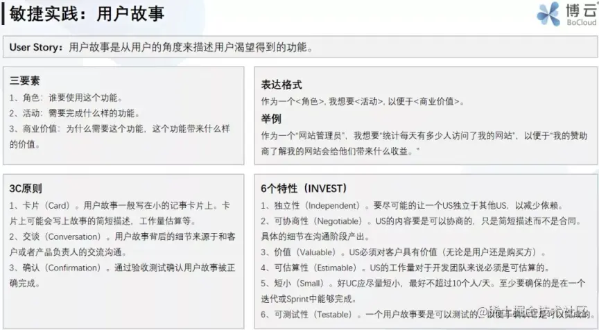 敏捷软件开发方法的需求梳理工作,一般是通过用户故事的形式来开展的。