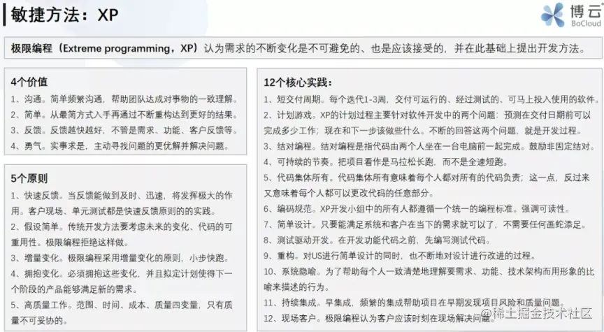 敏捷实践的总结:通过可落地的、紧密配合的一系列敏捷实践,来产生高价值、高质量的软件。