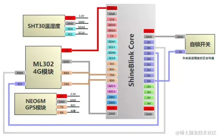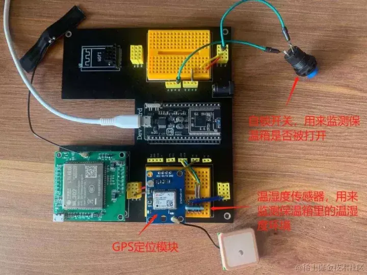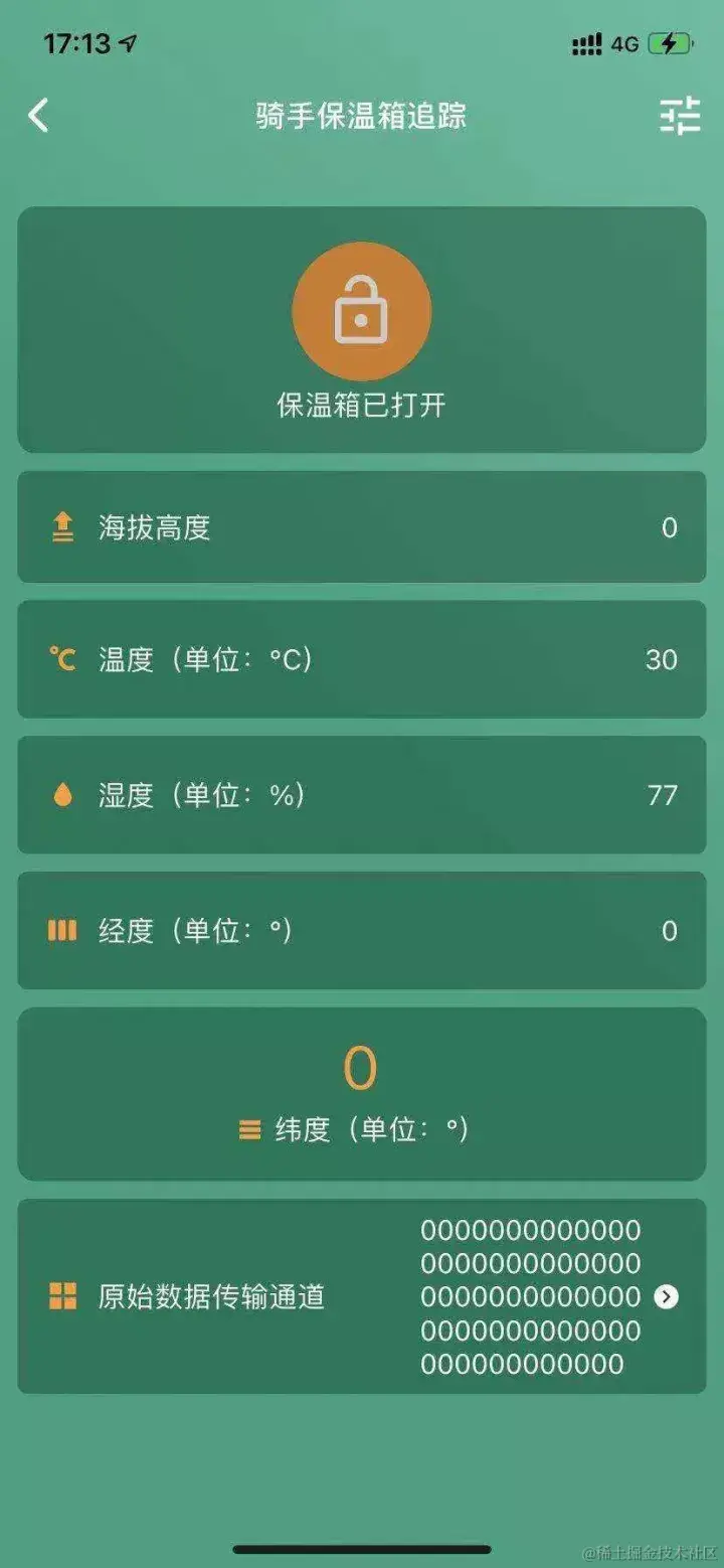 追踪外卖骑手的保温箱的GPS定位信息以及外卖箱是否被人打开,以防止骑手在送餐时电动车被盗窃或者外卖箱被人打开偷窃外卖餐品,并实时监控外卖箱内的温湿度数据,并将它们上传至机智云,然后我们就可以在远程通过手机App或者Web网页端来访问相关的定位数据、外卖箱温湿度环境数据、以及外卖箱是否被打开。