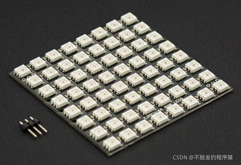 例如,DF创客社区8x8RGB全彩LED点阵模块,采用LED专用主控芯片WS2812,每个LED拥有独立地址位,可以单独控制,并且每一个RGB像素点可实现256级亮度显示,完成16777216种颜色显示,扫描频率不低于400Hz。仅需一根管脚即可控制所有LED,并且模块支持级联控制,可以多个模块同时控制,不占用管脚资源。