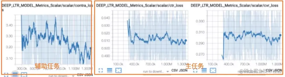 (3)优化策略方面,留意多个Loss的量级,如果差异很大,注意约束和控制;上图contra loss 与 ctr cvr的loss,差了一个量级。