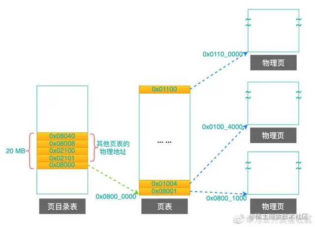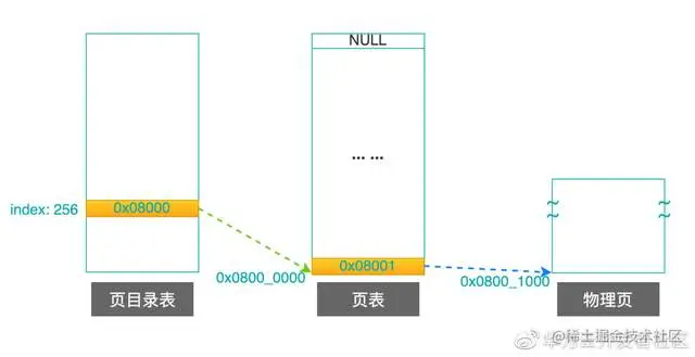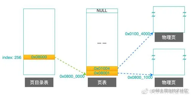 假设在刚才那个物理页(用作页表的那个)的上面,又找到一个空闲的物理页,地址是:0x0800_1000。