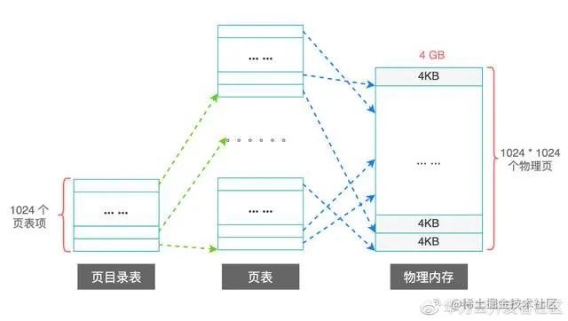 1. 每一个映射表中,只有 1024 个表项,每一个表项仍然指向一个物理页的起始地址;