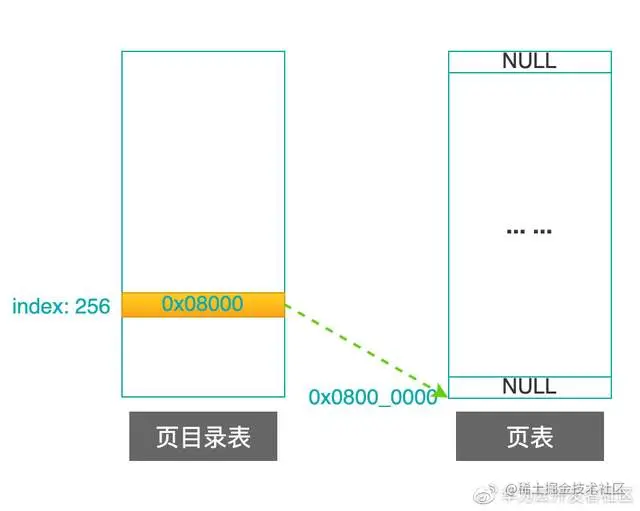 顾名思义:在页目录中,每一个表项指向一个页表的开始地址(物理地址)。