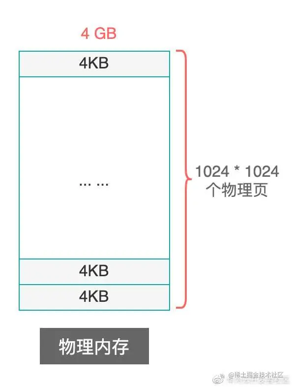 按照一个物理页4KB的单位来划分,4GB空间可以分割为1024* 1024个物理页: