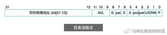 P(Present):存在位。1 - 物理页存在; 0 - 物理页不存在;