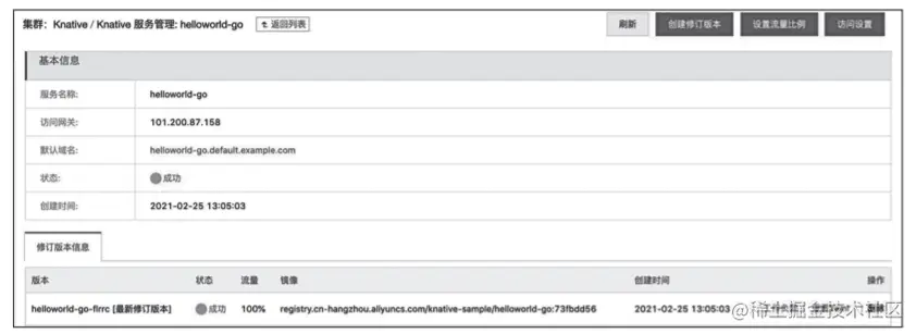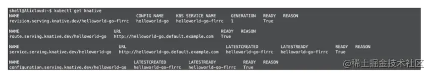 可以看到,刚部署的 Knative 应用,如图所示。