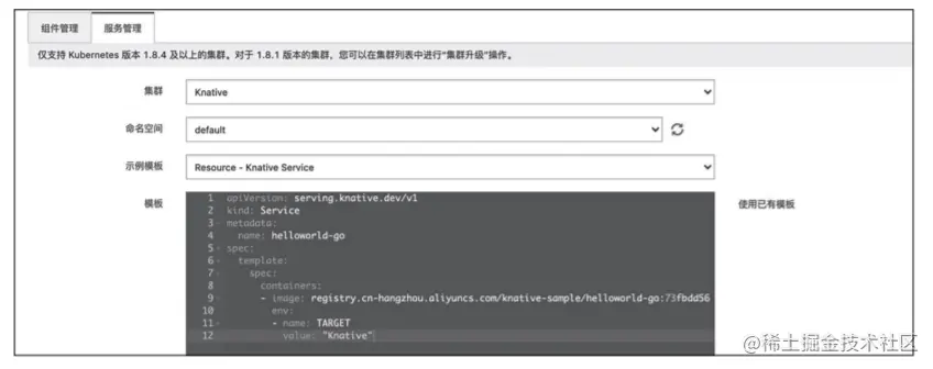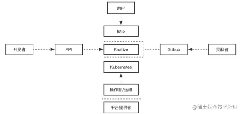 - 开发者是指 Serverless 服务的开发人员可以直接使用原生 Kubernetes API 基于 Knative 部署 Serverless 服务。
