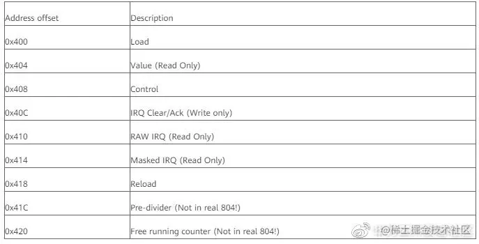 以上是Timer寄存器偏移地址,读者想了解详细寄存器相关信息请参考官方芯片手册。