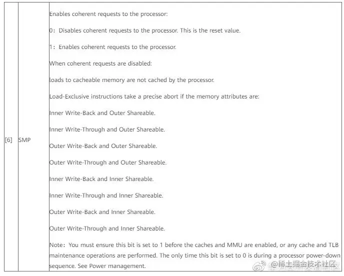 上表是ACTLR(Auxiliary Control Register)寄存器bit6功能描述信息,了解更多寄存器相关信息可以参考Cortex-A7 MPCore Technical Reference Manual。
